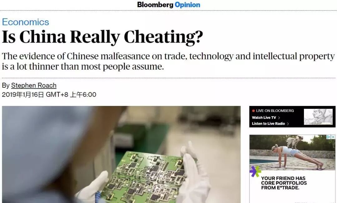 国彭博社1月16日发表原题为《中国真的在欺骗(我们)吗?》的文章,作者是耶鲁大学高级研究员、摩根士丹利亚洲区前主席史蒂芬·罗奇。