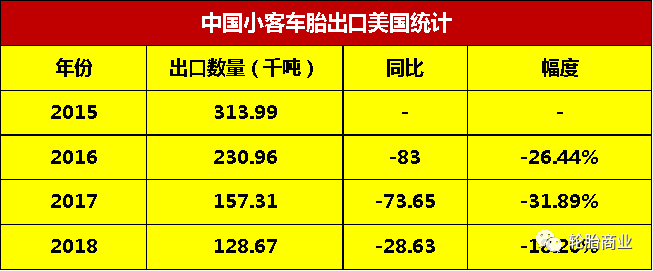从以上数据可以看出,自2015年美国对华乘用车和轻卡轮胎启动"双反"调查以来,中国小客车胎对美国出口量表现不佳,加上2018年美国商务部发布了对华乘用车及轻卡车轮胎"双反"第一次行政复审终裁结果,且年内中美贸易摩擦升级,对华商品加征关税不断,使得2018年中国小客车胎出口美国的数量进一步下降,中国小客车胎出口美国阻碍不断。